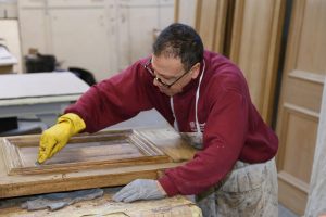 Expert French Polisher restoring a wood door